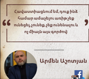 Երբ մարդասպանը (վթարով կամ այլ եղանակով) գտնվում է ազատության մեջ, իսկ ԲՈւՀ-ին փաստացի օգուտ տված Աշոտյան Արմենը` անազատության մեջ է ԲՈւՀ-ին վնաս հասցնելու քաղաքական մեղադրանքով: Ցույց տվեք` որտե՞ղ է արդարադատությունը: