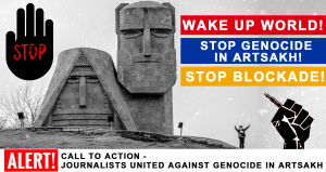 The Union of Journalists of Armenia and the media in Armenia are launching the “Wake Up World! Prevent the Genocide in Artsakh! Stop the Blockade!” campaign. Through this campaign, we are raising our voices in defense of our compatriots in Artsakh. We call on all Armenian media outlets, media persons, international and Armenia-based media organizations, freelance journalists and bloggers to join the campaign by disseminating this statement. We also call on them to post the following banners on the web pages of the respective media outlets and on social networks and keep them posted for as long as it takes for the ROAD OF LIFE linking Artsakh to Armenia to be opened: